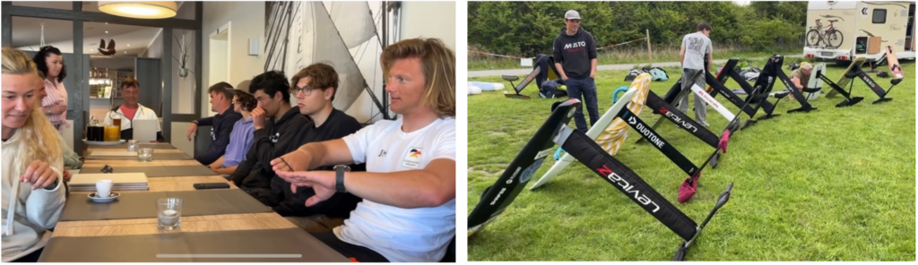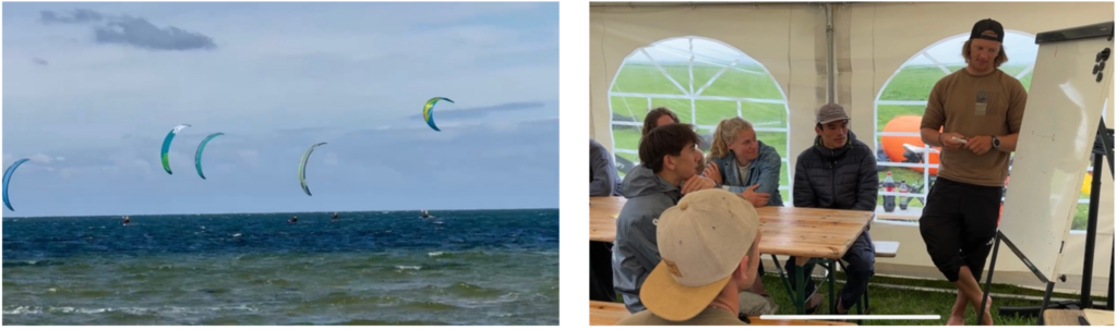 Am Nachmittag referierte Janis Maus über seine Erfahrungen als Profi, Rennkurse, Renntaktik und hatte einige Profitipps zur Herangehensweise bei Kite-Race-Regatten parat. Zudem wurden Übungsformen besprochen, die am nächsten Tag auf dem Wasser trainiert werden sollten.